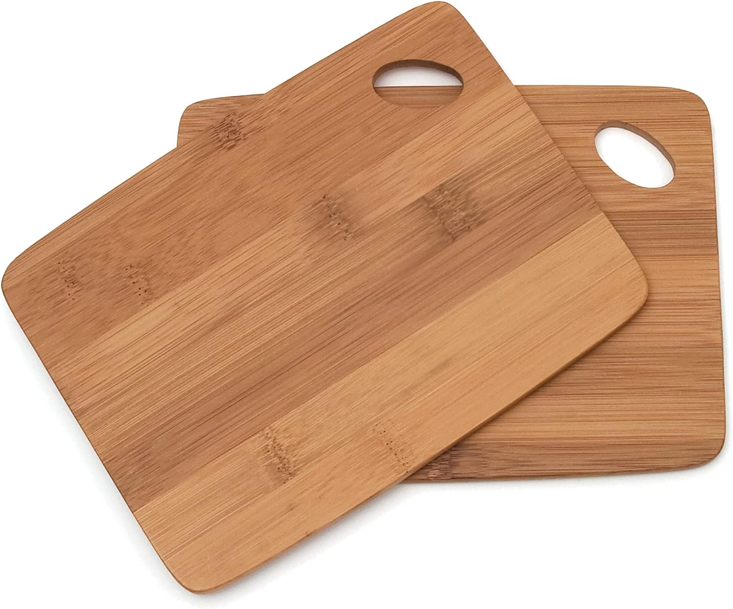 Bamboo Wood Thin Kitchen Cutting Boards with Oval Hole in Corner, Set of 2 Boards, 6″ x 8″ x 0.25″